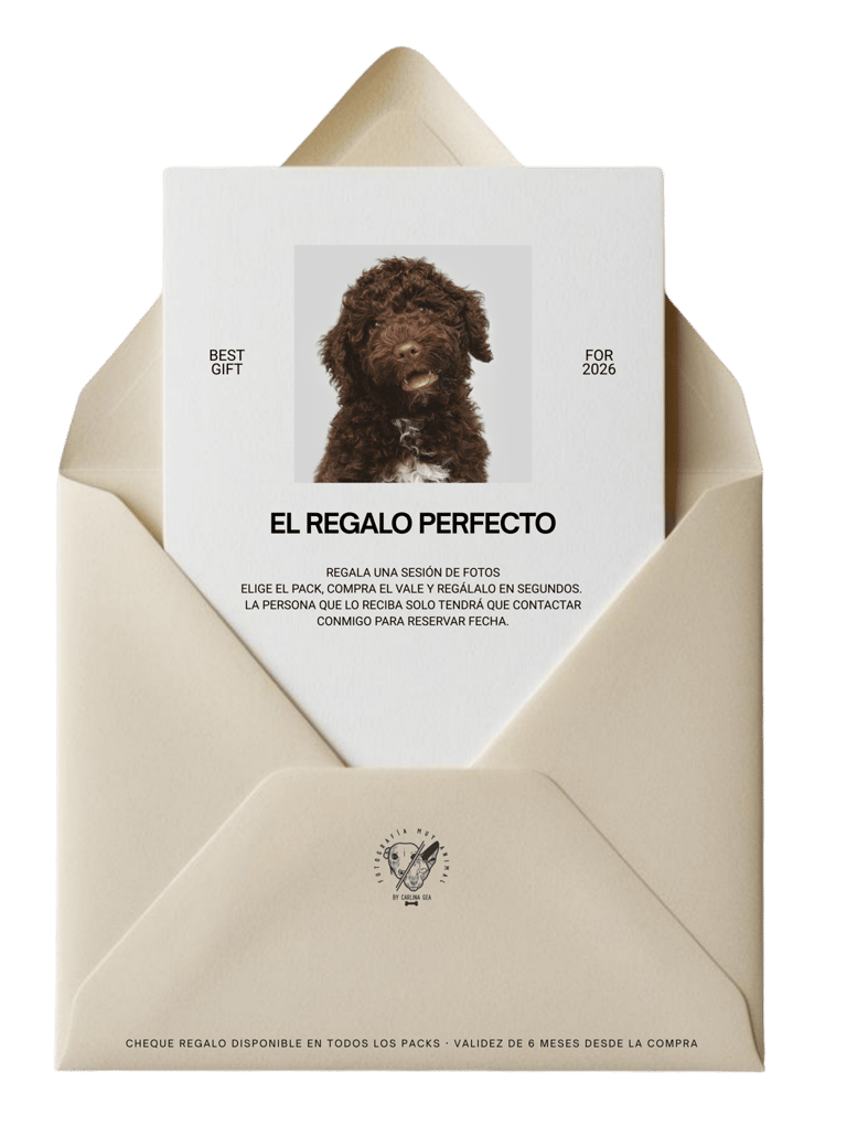 Una sesión en estudio pensada para quienes quieren un poco más de margen a la hora de elegir. Incluye 10 fotografías digitales editadas en alta resolución, con tiempo y calma para adaptarnos a cada animal y a su carácter. Las imágenes se centran en él, con la opción de que aparezcáis juntos si lo deseáis.