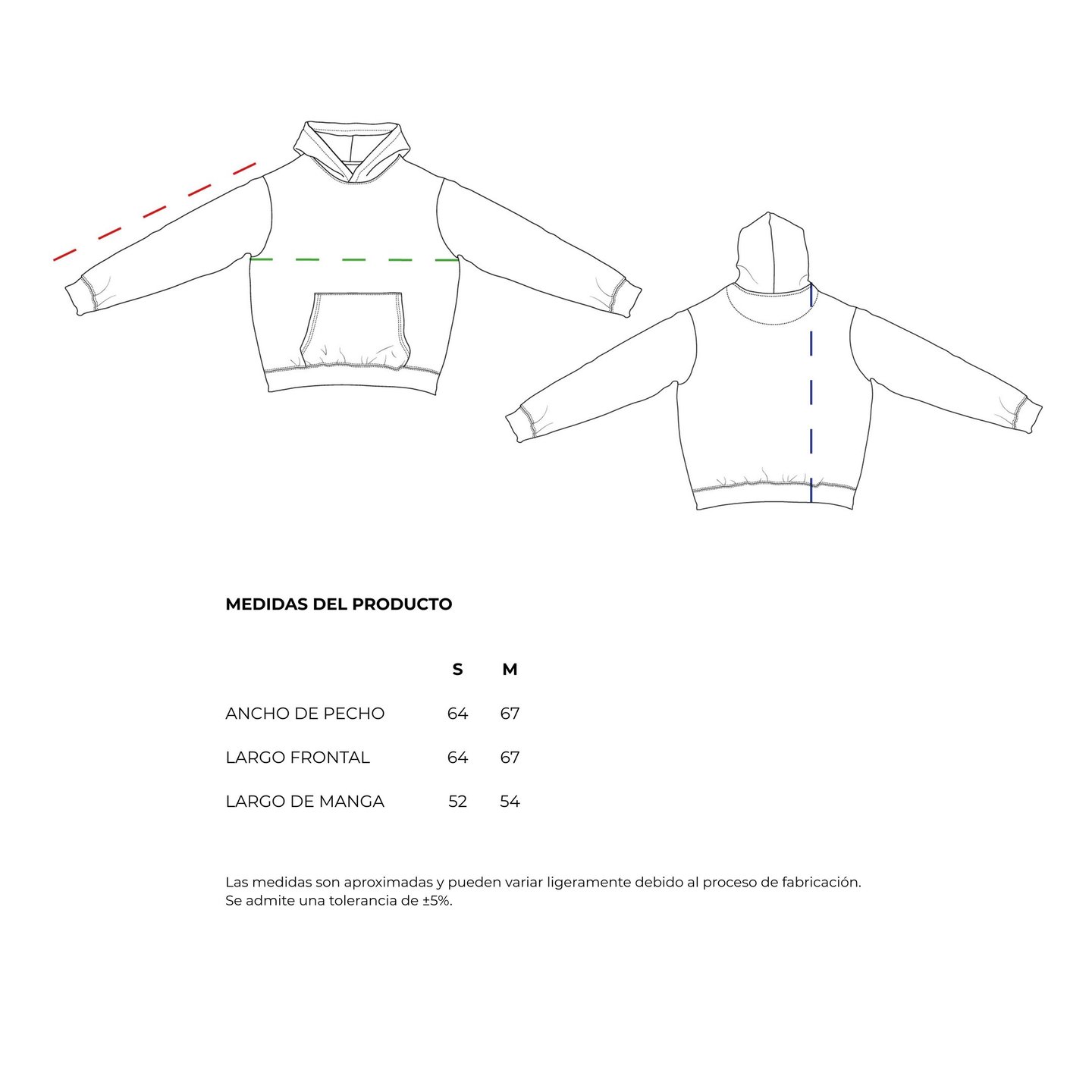 Capucha forrada para mayor volumen y confort, canalé 1x1 en puños y bajo para buen retorno elástico y un perfil limpio, y media luna del mismo tejido en la parte posterior del cuello para reforzar una zona de fricción.